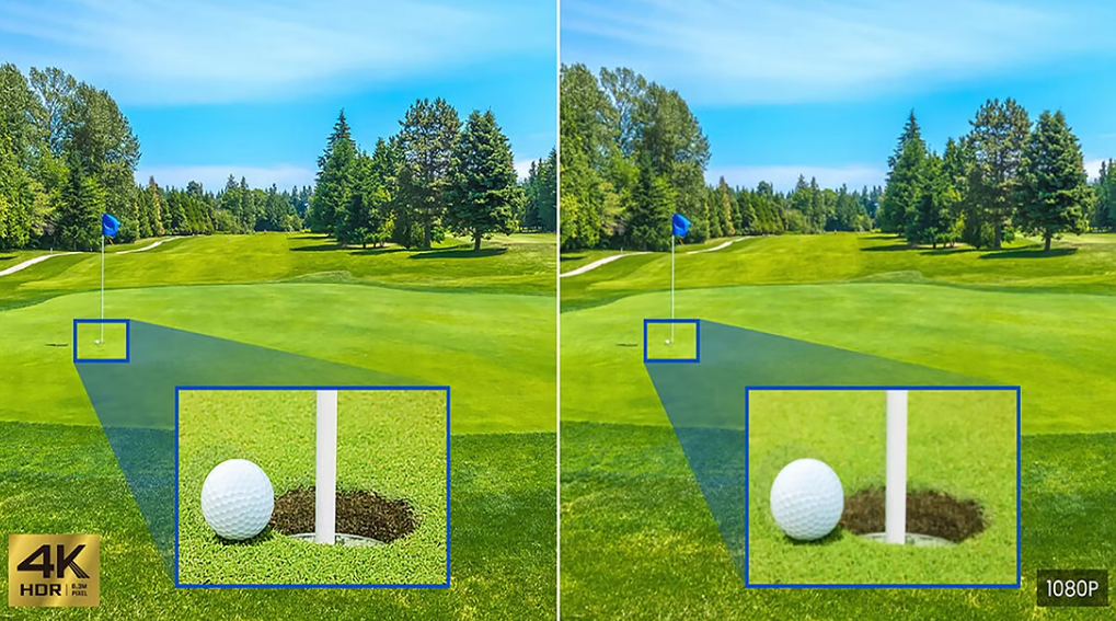 Gerçek 4K çözünürlük ve 8,3 milyon piksel ile AK700ST, golf sahası arazisinin ve çimlerinin her ayrıntısını ortaya çıkararak doku zenginliğini artırır.