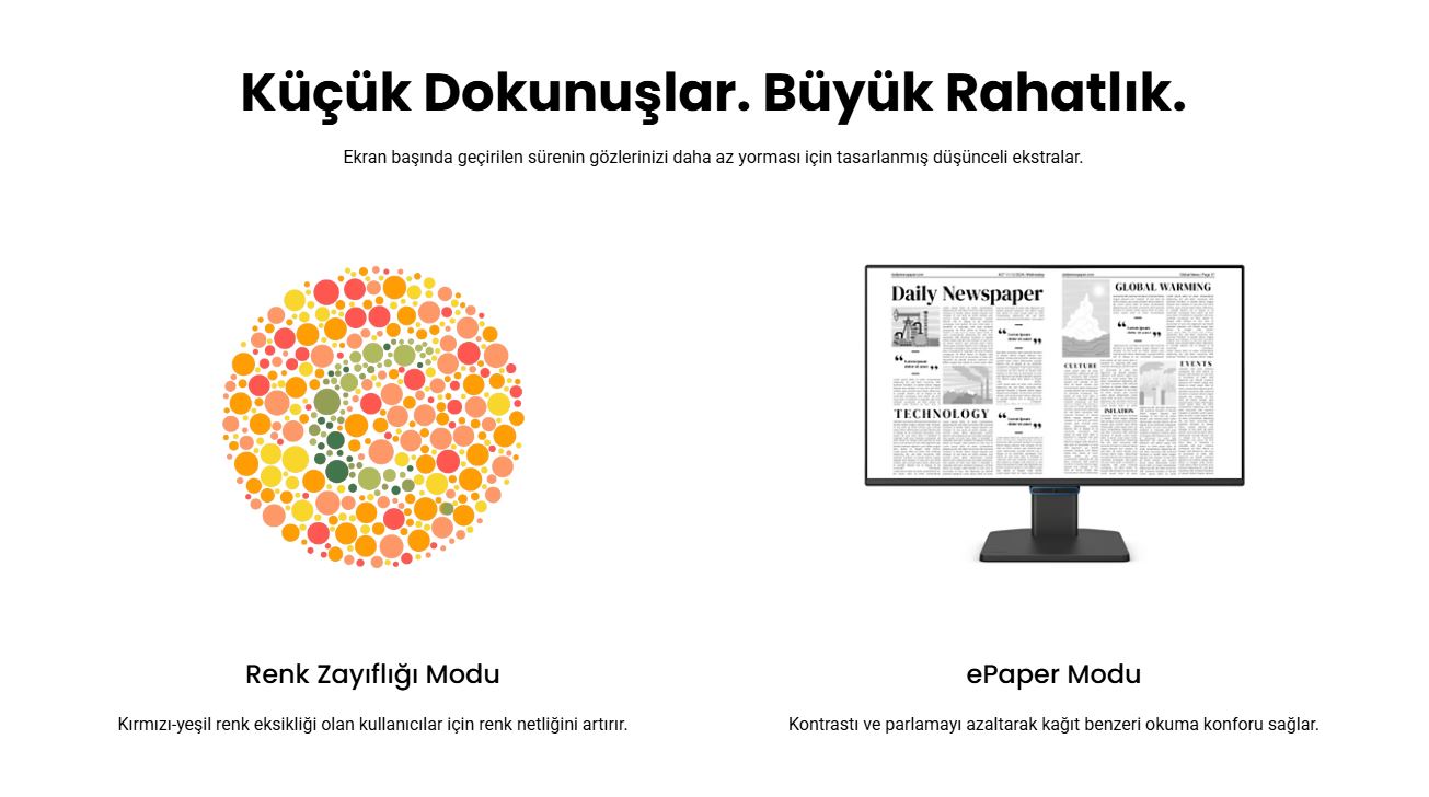 Temiz çizgiler ve kusursuz görüntüleme deneyimi odaklanmayı artırır ve dikkat dağıtıcı unsurları ortadan kaldırır.