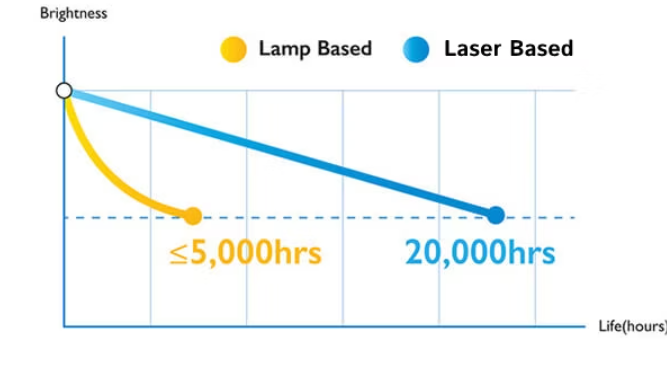 BenQ BlueCore lazer projektörler, 20.000 saatlik üstün görüntü kalitesi ve performans sunar. Lazer ışık kaynağı, zaman içindeki renk bozulmasına karşı direnir, bu durum BenQ lazer projektörlerini belirli bir çalışma süresinin ardından farklı parlaklık seviyeleri üreten bitişik projektörlerle ilgili endişe duymadan, çoklu karma yansıtmalar için ideal hale getirir.