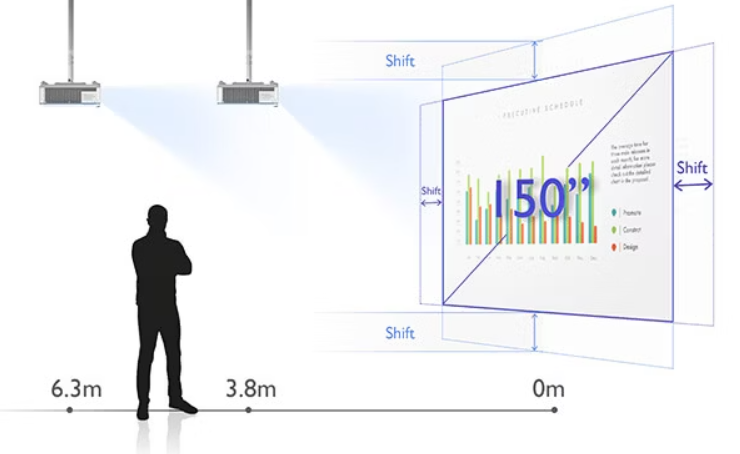 LU785'in 1,65X geniş yakınlaştırma aralığı ve lens kaydırma sistemleri, özellikle ışıkların veya havalandırma menfezlerinin tavana monte edildiği yerde olması gibi zorlu koşullara sahip herhangi bir mekandaki görüntüleri mükemmel bir şekilde hizalayabilir. Kurulum esnekliği, işletmelerin eski projektörleri değiştirmesini kolaylaştırır ve çeşitli kurumsal toplantı odası uygulamalarında farklı montaj seçenekleri sunar.