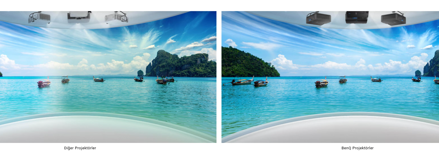 BenQ'ya özel beyaz dengesi ayarları, farklı projektörlerden yansıtılan görüntüler arasındaki beyaz dengesi değişkenlerini, çoğu kişinin fark göremeyeceği kadar düşük bir seviyeye indirebilir. Bu sayede, kesintiye neden olabilecek tutarsızlıklar olmadan kusursuz ve doğru bir görüntü kalitesi elde edilir ve projektörleri kurarken renk ayarlaması yaparken zamandan tasarruf edilir.