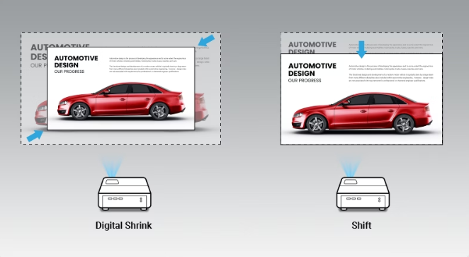 Özelleştirilebilir ve kusursuz görüntüleme için projektörünüzü hareket ettirmeden görüntünüzü yeniden boyutlandırın ve yeniden konumlandırın.
