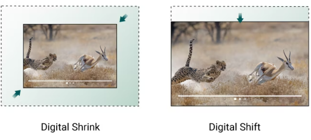 Dijital Küçültme ve Kaydırma İstenilen çerçeve ve alanda hassas bir şekilde hizalanmış görüntüler elde etmek için projektörü fiziksel olarak yeniden kurmadan veya ayarlamadan OSD aracılığıyla projeksiyonu küçültün ve kaydırın.