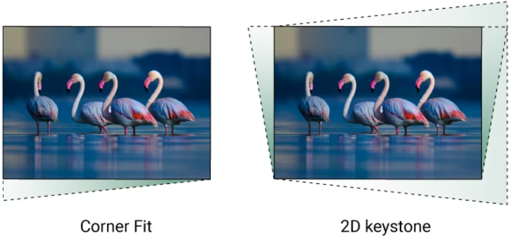 2D Keystone ve Köşe Uyumu LW855UST, iki boyutlu trapezoid düzeltme özelliğiyle donatılmıştır. Köşe Uyum kontrolü, mükemmel hizalanmış görüntü geometrisi için her köşeyi ayrı ayrı ayarlar.