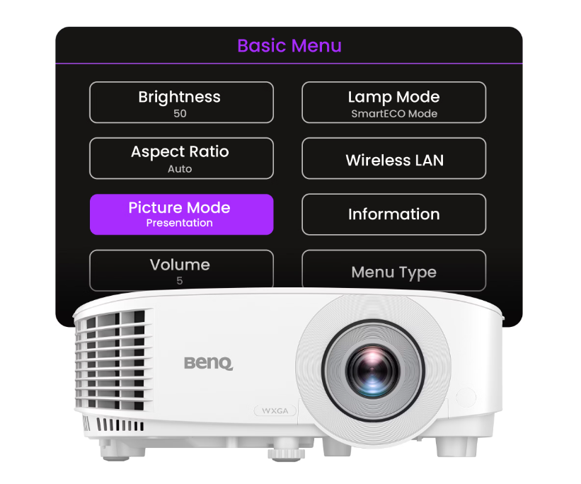 BenQ'nun saf cam mercekleri ve DLP teknolojisiyle desteklenen sunumlar, infografikler ve veri incelemeleri için özel görüntüleme modlarıyla netliği, rengi ve kontrastı artırın.