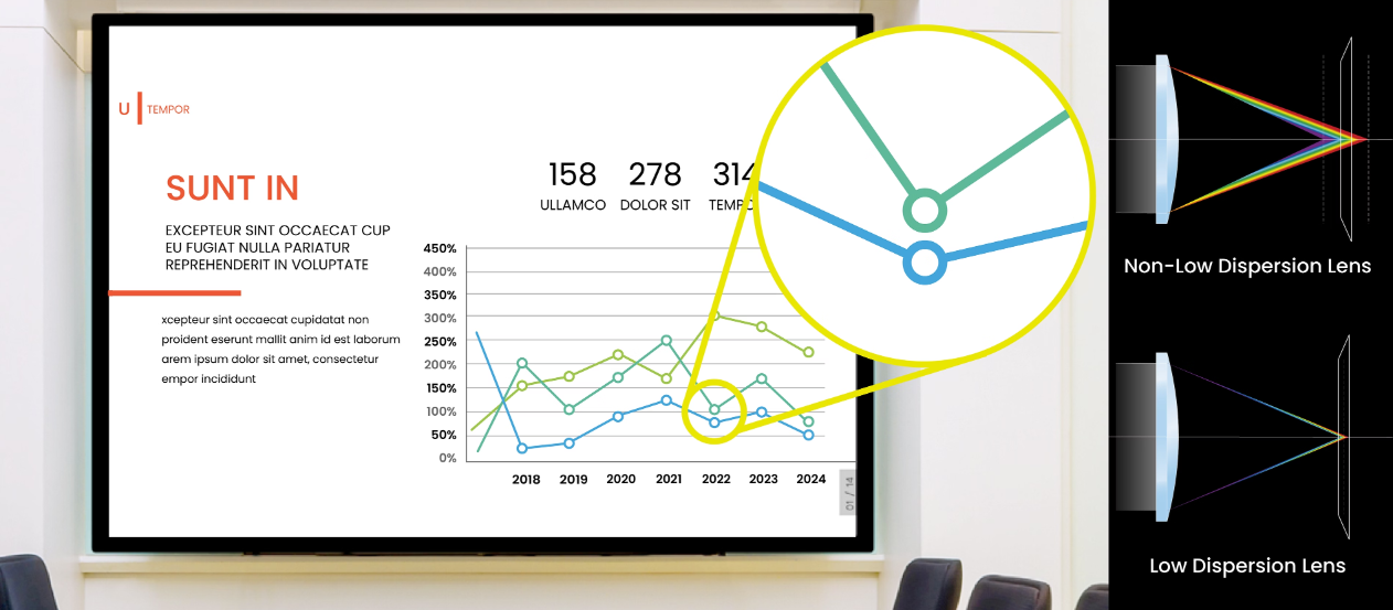 Kristal Netliğinde Görüntüler - Tamamen cam lensler, 4000lm yüksek parlaklık, yüksek çözünürlük ve özel renk modlarıyla sunumlarınızı sergileyin.