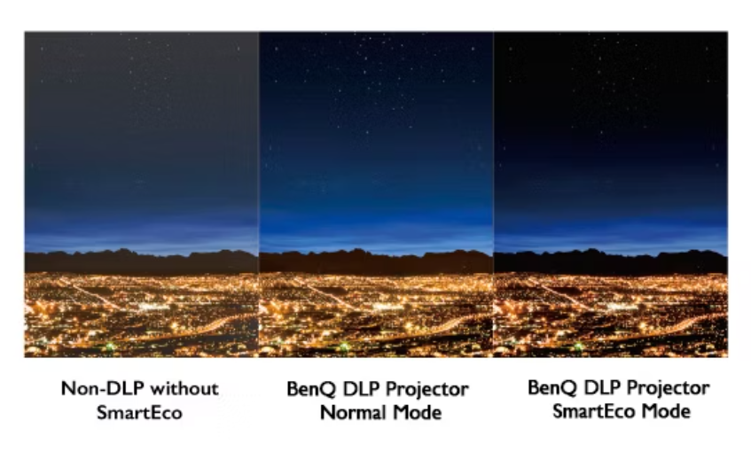 BenQ'nun özel SmartEco™ Teknolojisi, içeriğe göre ışık çıkışını ustaca ayarlayarak kontrastı artırır ve daha zengin siyahlar ile özellikle astronomi kursları gibi detaylı ve dinamik karanlık sahneler için önemli olan mümkün olan en iyi görüntü kalitesini sunar.
