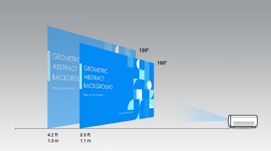 Sadece 1 m~2 m uzaklıktan 100 inçten daha büyük görüntüleri yansıtarak her boyuttaki odada büyük ekran görüntülemeyi kolaylaştırır.