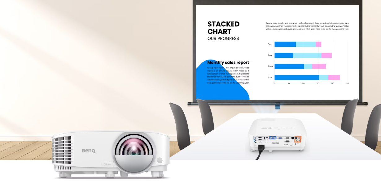 0,49 kısa atım oranına sahip tasarımıyla MW826STH, sadece 1,1 metre uzaklıktan 100 inçlik bir görüntü yansıtabilir ve bu da onu küçük toplantı odaları için mükemmel bir çözüm haline getirir.