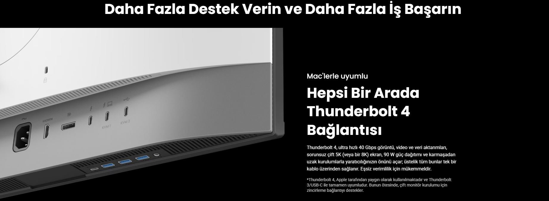 • Thunderbolt 4 USB-C + 90 W güç & bağlantı.