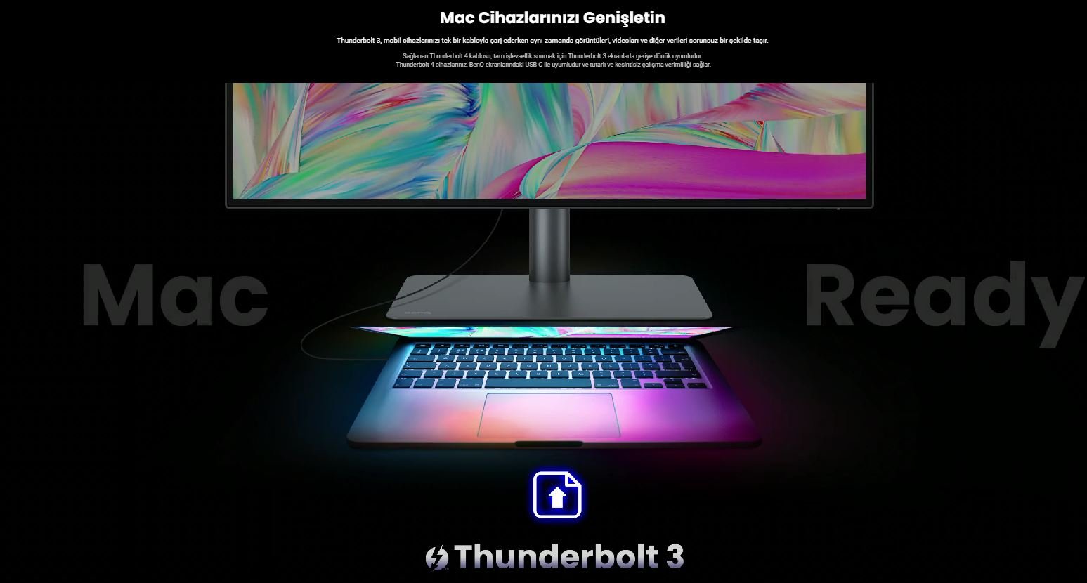 • Thunderbolt 3 (90W) ile tek kablo bağlantı