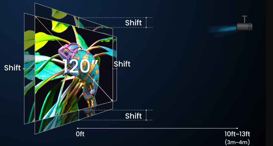1,3x yakınlaştırma, karmaşık kurulum zahmetine girmeden büyük ekran eğlencesi için çeşitli atış mesafeleriyle kullanılabilir alanı en üst düzeye çıkarır.