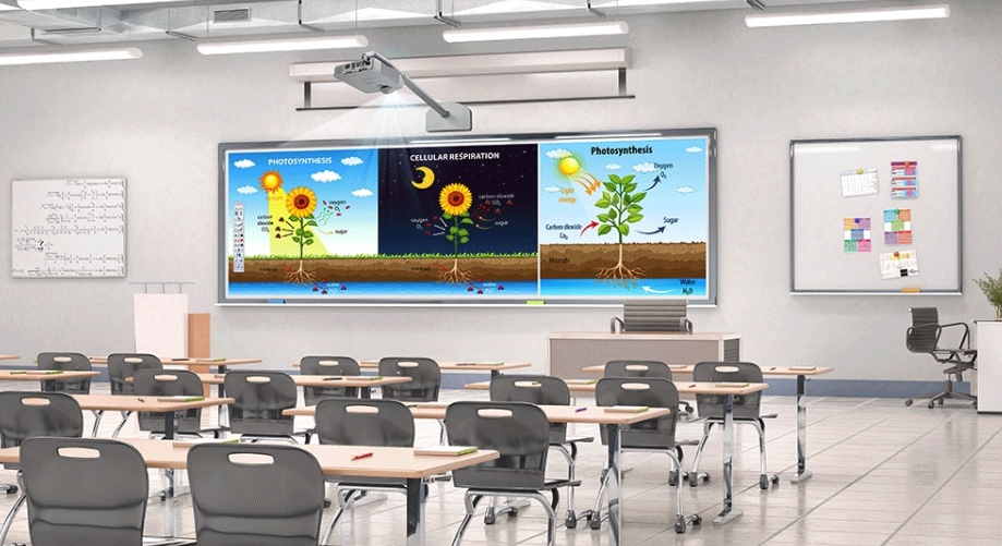 4.000 lümen renkli ve beyaz parlaklık sunan bu kısa mesafeli lambasız lazer projektör, 120 inçe kadar diyagonal boyutta yüksek kaliteli WXGA çözünürlük sağlar. 75 inç düz panelden üç kat daha büyük görüntülerle, sunumlarınız sınıfın her yerinden rahatça görülebilir ve etkileşim artar.