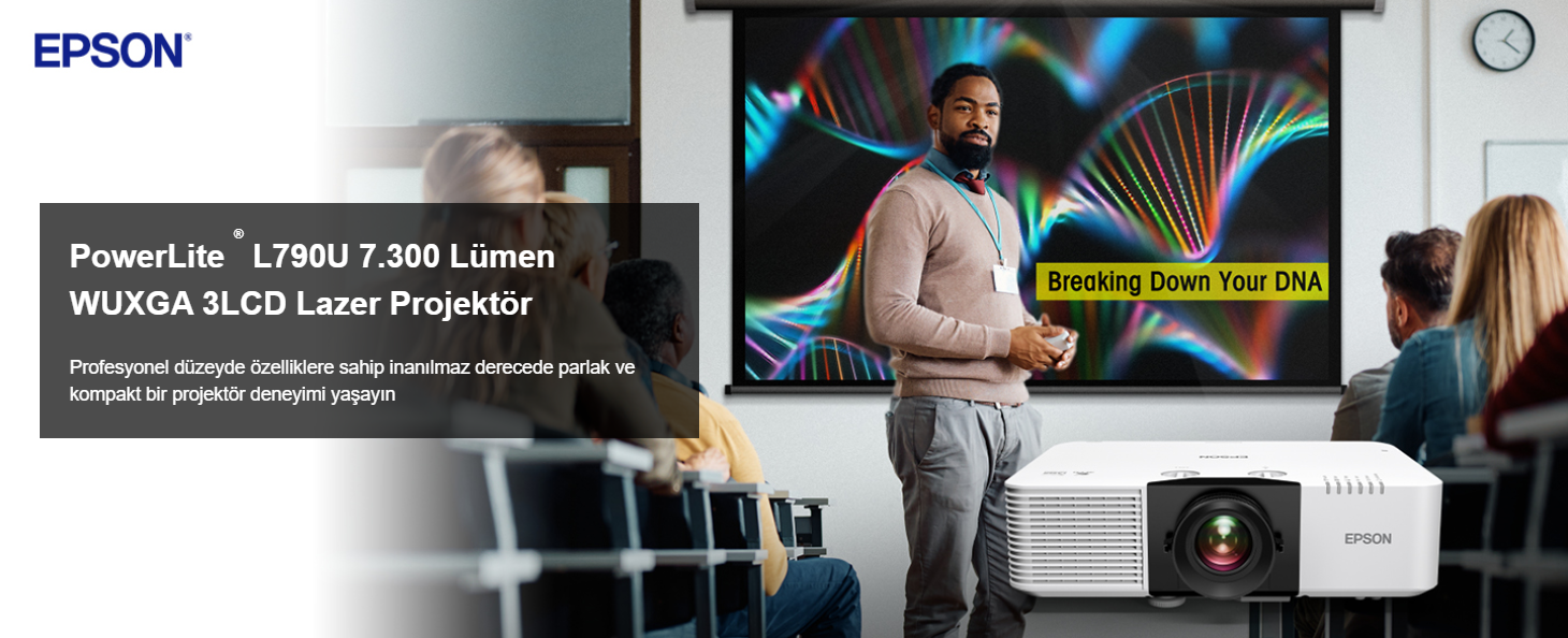 PowerLite® L790U , kompakt ve çok yönlü PowerLite L Serisi projektör ailesine inanılmaz parlaklık ve profesyonel özellikler katar. 7.300 lümen 1 renkli ve beyaz parlaklığa sahip olan bu projektör, sınıflar, konferans salonları, hibrit çalışma alanları ve daha fazlası için idealdir. Bu güçlü projektör, 16:10 en boy oranında 500 inç'e kadar Full HD WUXGA çözünürlükle olağanüstü canlı ve yüksek çözünürlüklü görüntüler üretir. Ayrıca, ultra geniş 16:6 ve 21:9 gibi çeşitli diğer en boy oranlarında da projeksiyon yapabilir.