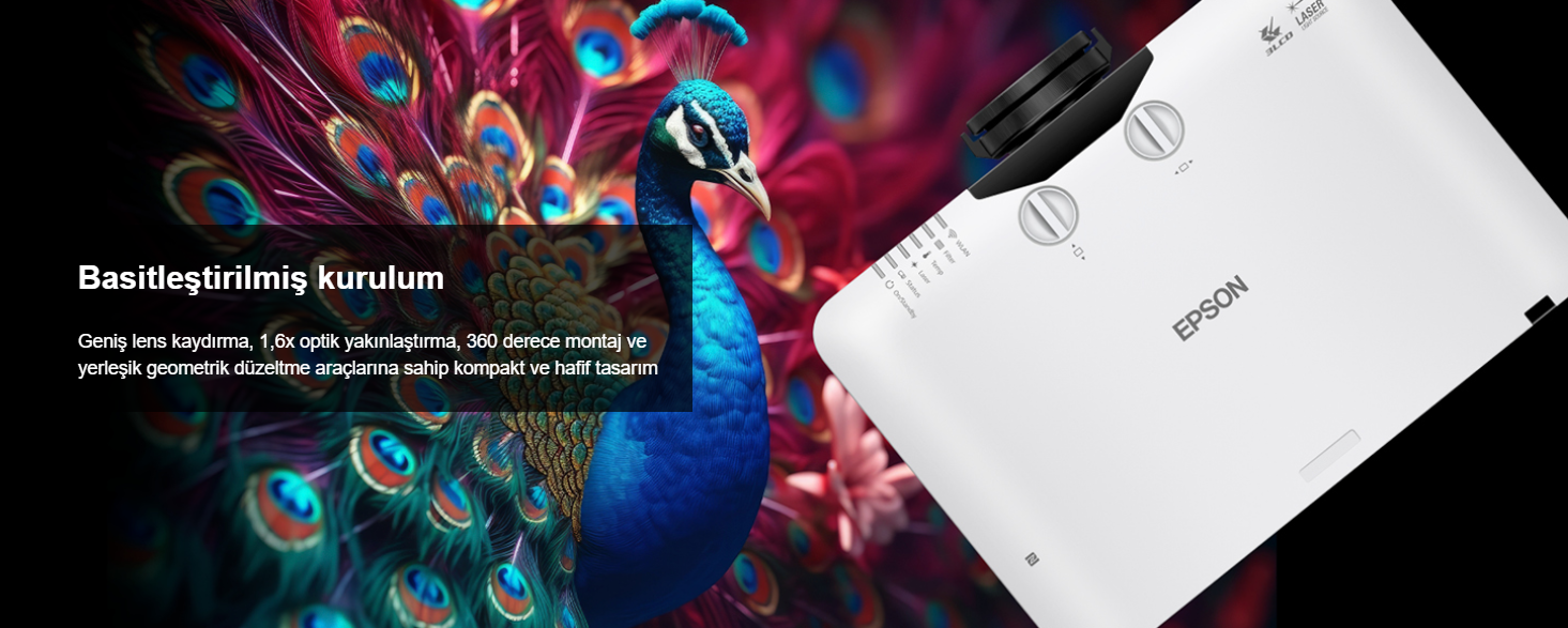 Kullanım kolaylığı düşünülerek tasarlanan PowerLite L790U, Genişletilmiş Modda 30.000 saate kadar neredeyse hiç bakım gerektirmeyen lazer ışık kaynağı ve hava filtresi 2 ile donatılmıştır . Kolay ve sorunsuz kurulum için bu çok yönlü çözüm, optik yakınlaştırma, geniş lens kaydırma, geometrik düzeltme araçları ve daha fazlası gibi çeşitli güçlü özellikler sunar. Dahili kablosuz iletişim sayesinde, Epson Projector Management Connected uygulamasını kullanarak filonuzu bir web tarayıcısından uzaktan izleyebilir ve kontrol edebilir, ayrıca Epson iProjection™ 3 , Apple ® AirPlay ® 4 ve Miracast ® 3 gibi gelişmiş ekran yansıtma araçlarını etkinleştirebilirsiniz . Ayrıca, isteğe bağlı takılabilir PixAlign™ kamera ile karmaşık çoklu projektör uygulamalarını basitleştirebilirsiniz.