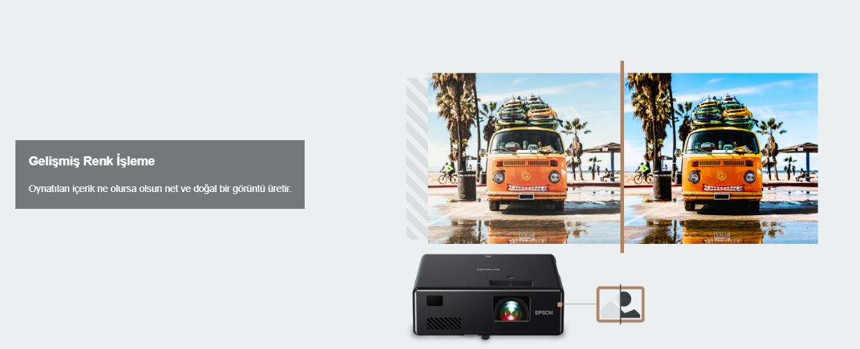 Gerçek 3 Çipli Projektör Tasarımı — Gelişmiş 3LCD teknolojisi, her kare için RGB renk sinyalinin %100'ünü görüntüler. Bu, diğer projeksiyon teknolojilerinde görülen dikkat dağıtıcı "gökkuşağı" veya "renk parlaklığı" sorunları olmadan mükemmel renk parlaklığını korurken olağanüstü renk doğruluğu sağlar.