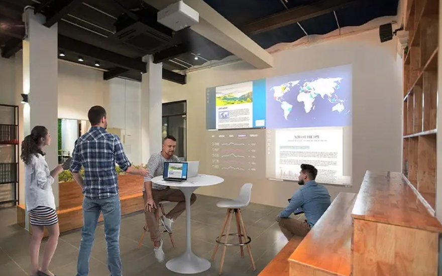 Büyük projeksiyon alanı: Tek bir projektörle 200 inçe kadar görüntü veya çoklu projektörle birleşik kurulum