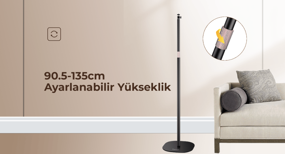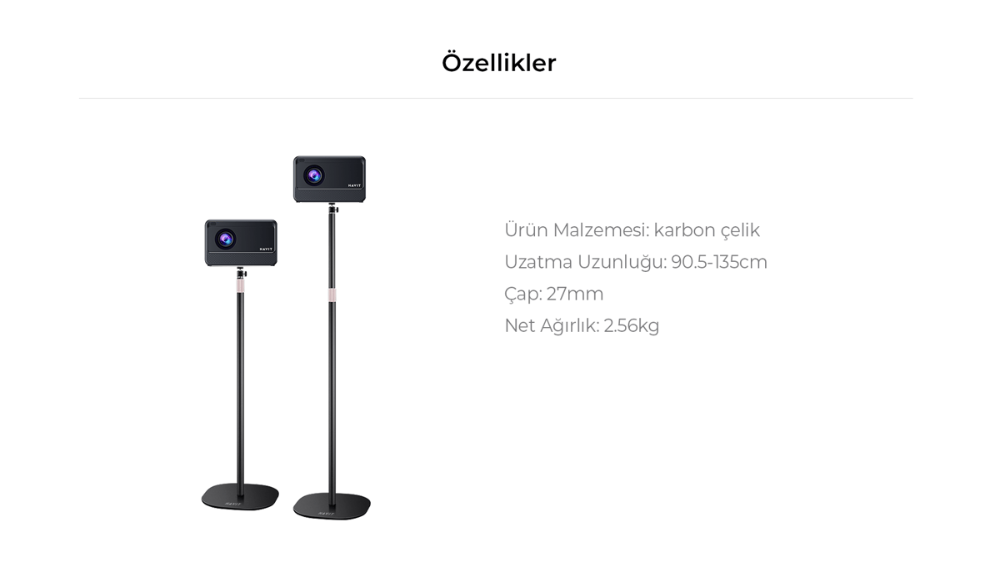 360° Dönebilen Kafa, 90.5-135cm Ayarlanabilir Yükseklik ve Stabil Projektör Standı yüksek seviyede kullanım esnekliği ve stabilite sunar.