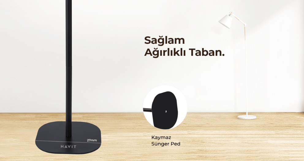 Bu projektör standının altında bulunan köpük ped, sadece güvenli bir taban sağlamakla kalmaz, aynı zamanda zeminin çizilmesini ve iz bırakmasını önler.
