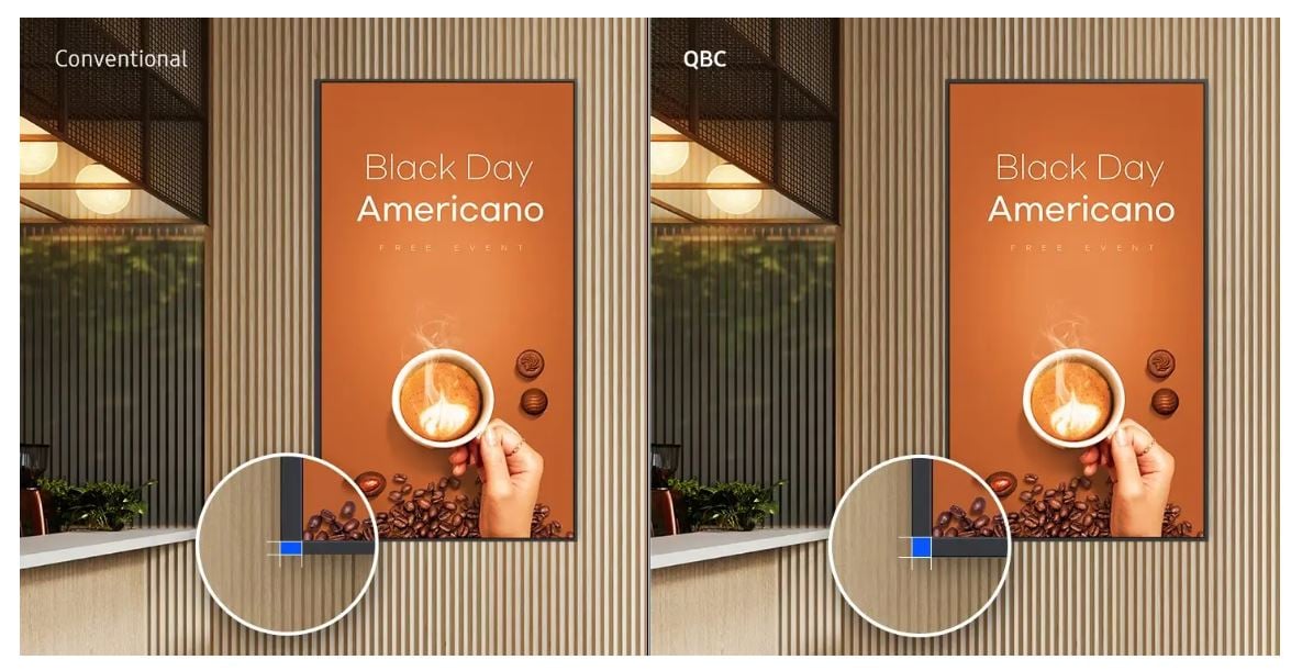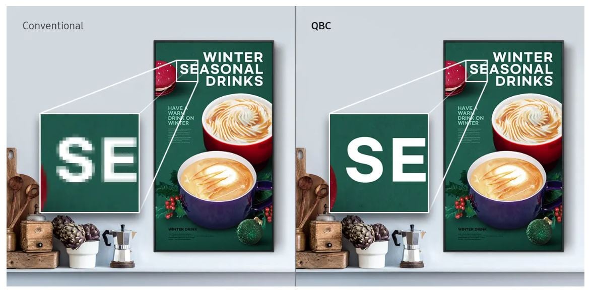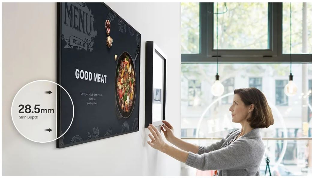 28,5 mm’lik ultra ince kalınlığıyla benzersiz olan QBC, Samsung’un UHD serisindeki en ince seçenektir. Her ortama düzgün ve kolay bir şekilde monte etmenizi sağlayan Slim Fit TV Askı Aparatı’na sahiptir. QBC, işletmenize kusursuz bir şekilde uyum sağlayan şık tasarımıyla alanı optimize eder.