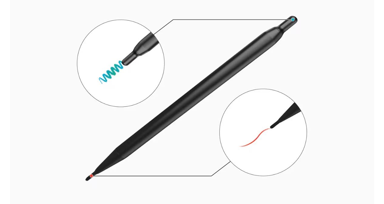 İkili kalem işlevi, iki farklı yazma aracının herhangi bir kesinti olmadan kullanılmasını sağlar. Çift taraflı kalem ucu sayesinde kullanıcılar, ders akışını kesmeden veya ayar değiştirmeden kalemin ön ve arka tarafındaki iki farklı rengi kolayca kullanabilir.