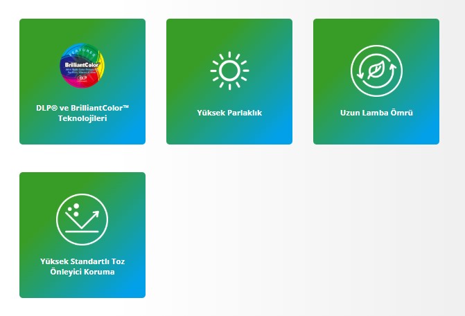 - Canlı ve zengin görüntü kalitesi için BrilliantColor™ özellikli DLP® teknolojisi,